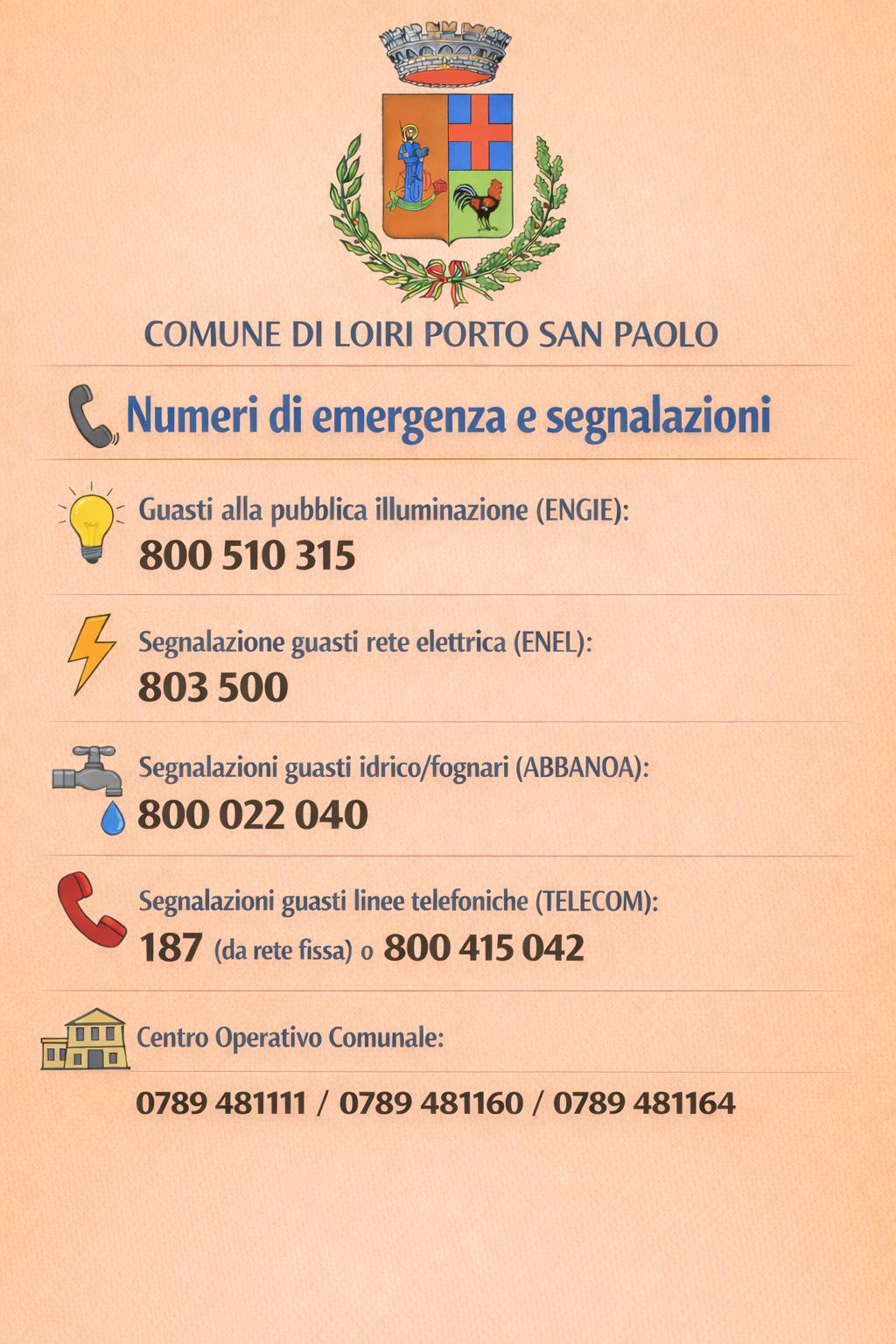 Centro Operativo Comunale: 0789 481111 – 0789 481164 – 0789 481108