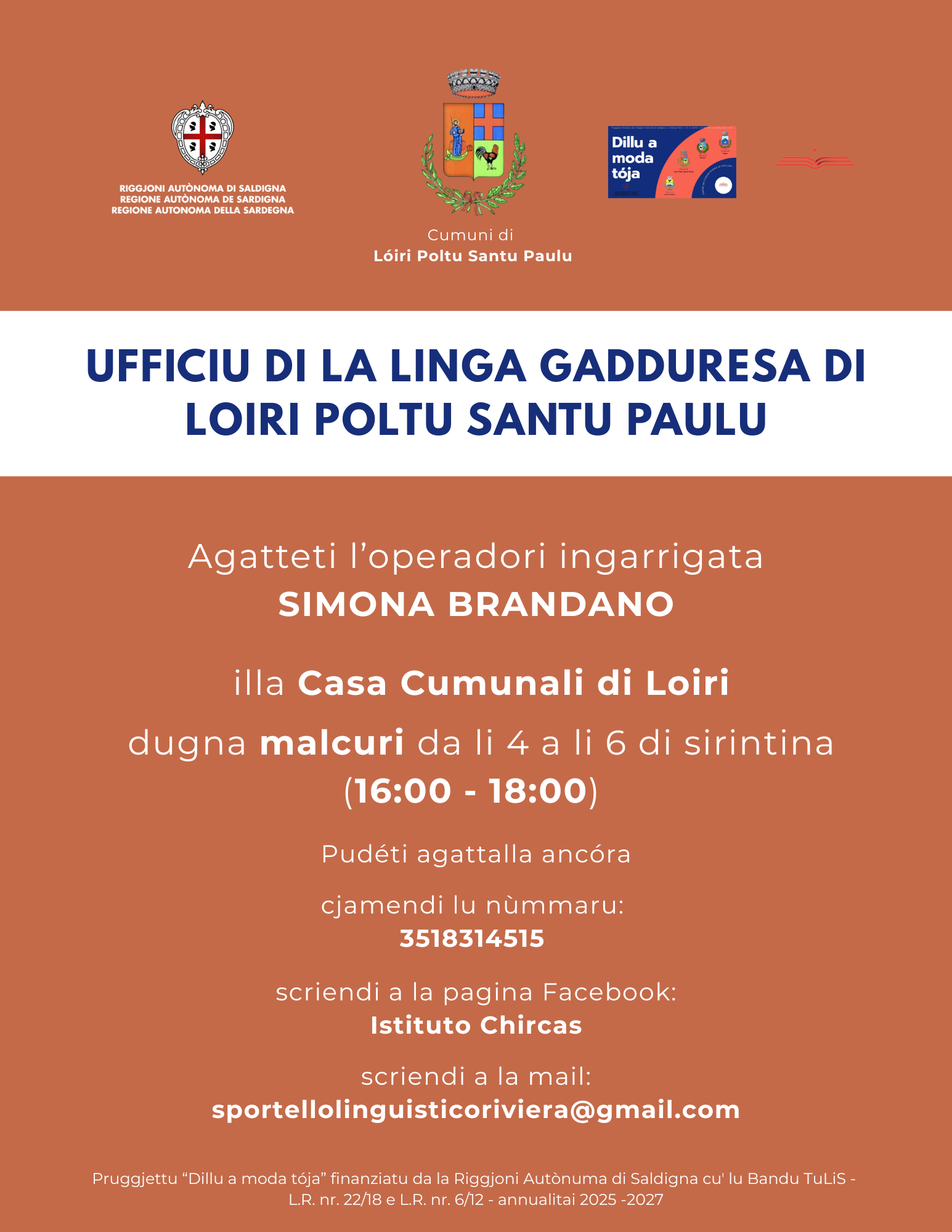 Riparte con una nuova e ambiziosa programmazione triennale lo sportello linguistico nel Comune di Loiri Porto San Paolo. Grazie al progetto “Dillu a moda tója”, l’Unione dei Comuni Riviera di Gallura conferma il proprio impegno, iniziato nel 2021, nella tutela e promozione del Gallurese.