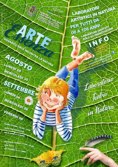 L' Amministrazione comunale Assessorati alla Cultura, Spettacolo, Turismo, Sport, Politiche Sociali e Giovanili invita tutti gli interessati a partecipare al Laboratorio gratuito di Teatro in Natura per principianti rivolto a tutti a partire dagli 8 anni e per un massimo di 20 partecipanti.